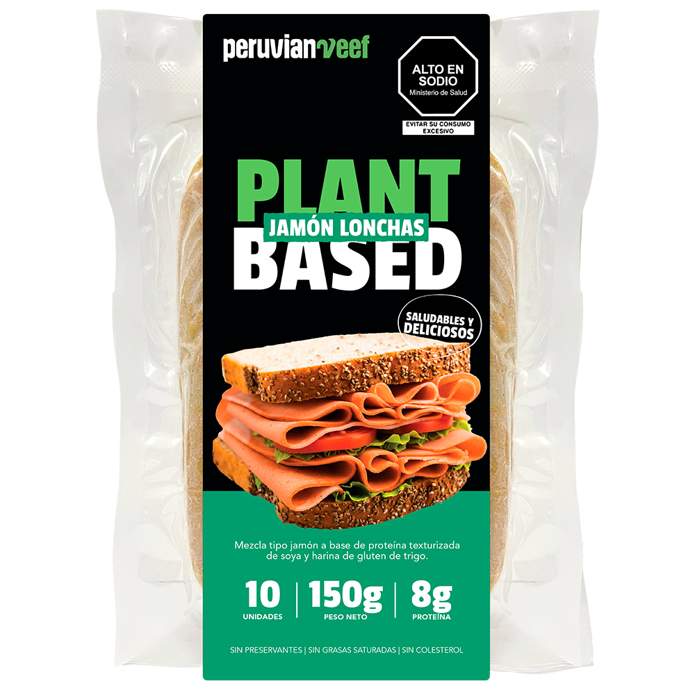Lonchas tipo jamón, con sabor auténtico y textura suave. A base de proteína de soya y trigo. ¡Lo vas a amar!